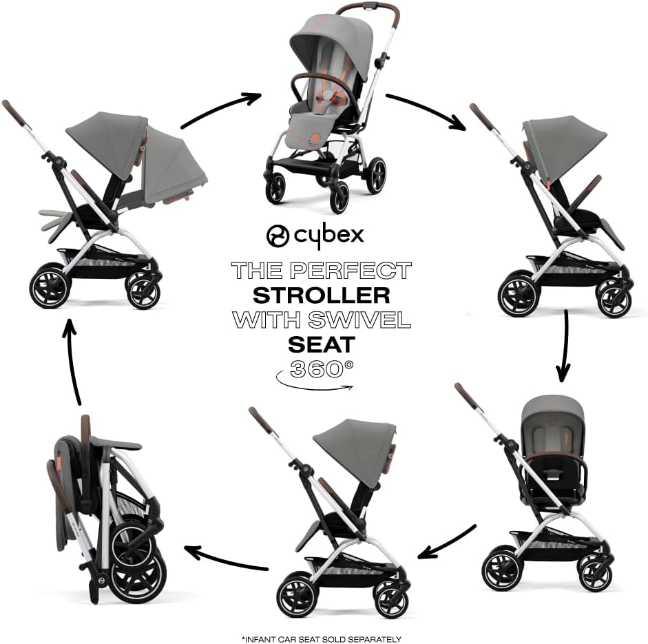 CYBEX Eezy S Twist +2 V2 Baby Stroller with 360° Rotating Seat for Infants 6 Months and Up - Compatible with CYBEX Car Seats Lava Grey