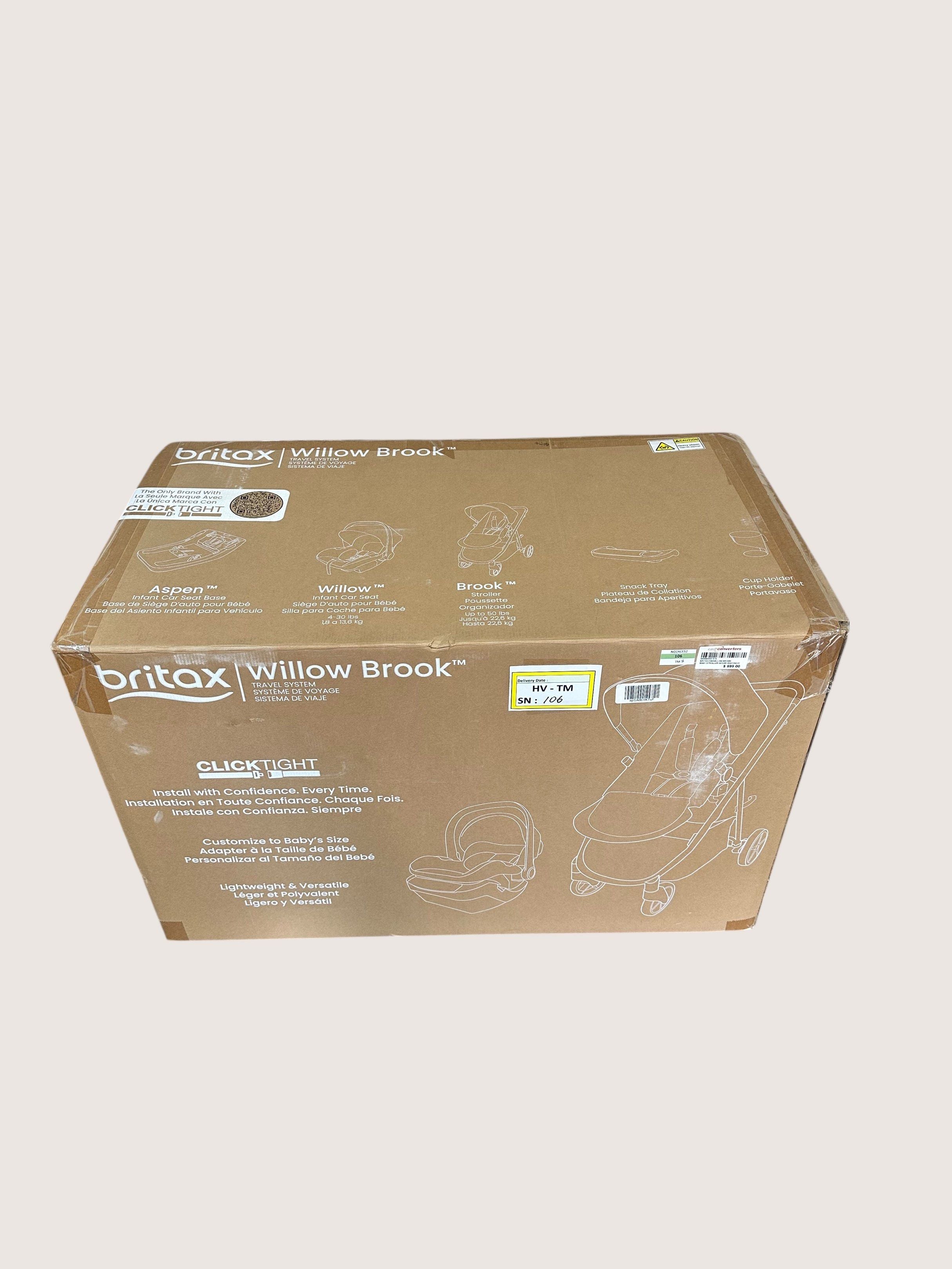 • Willow Brook Baby Travel System includes the Willow car seat, Aspen base, and Brook baby stroller