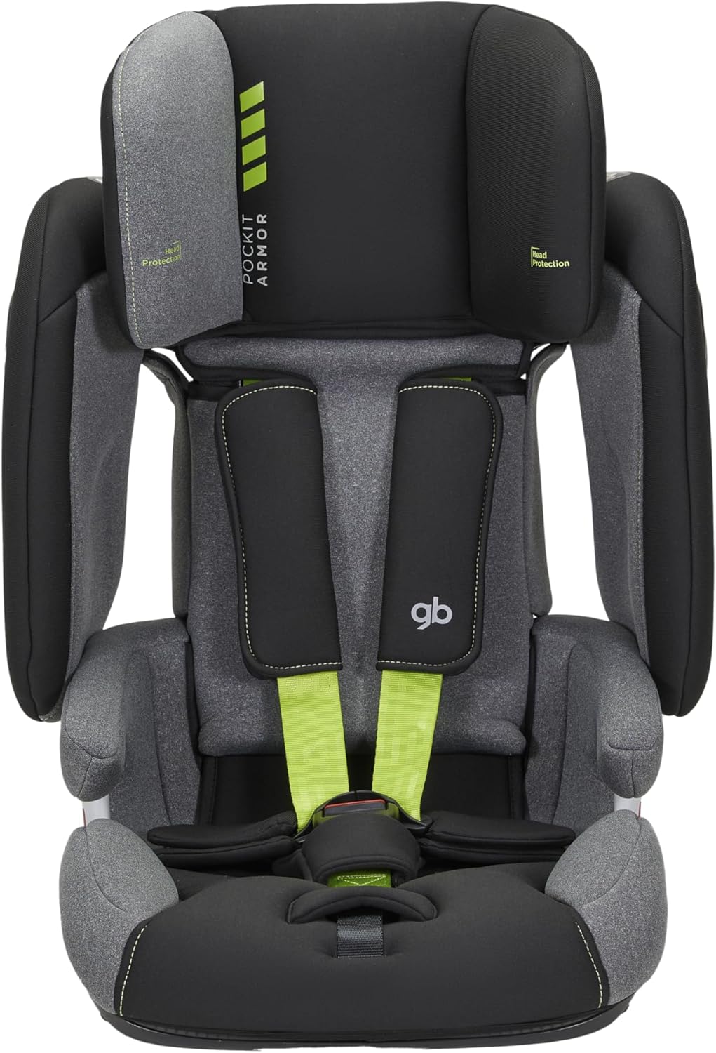 gb POCKITARMOR Car Seat for 9-12 Years, 36kg Weight Limit, Memory Foam Headrest, Side Impact Protection, ECE R129/03 & GB27887-2011 Certified, Compact and Easy to Fold,Grey