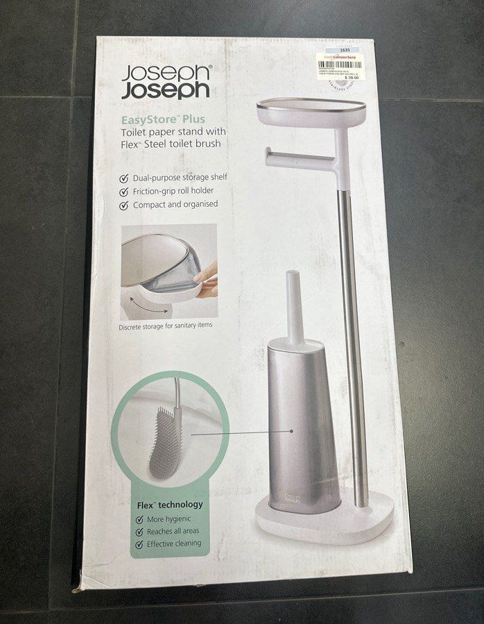 Joseph Joseph 70519 EasyStore Butler Plus Stand Toilet Paper Holder With Flex Steel Brush GreyWhite Stainless Steel