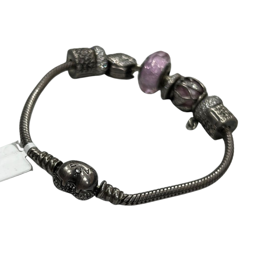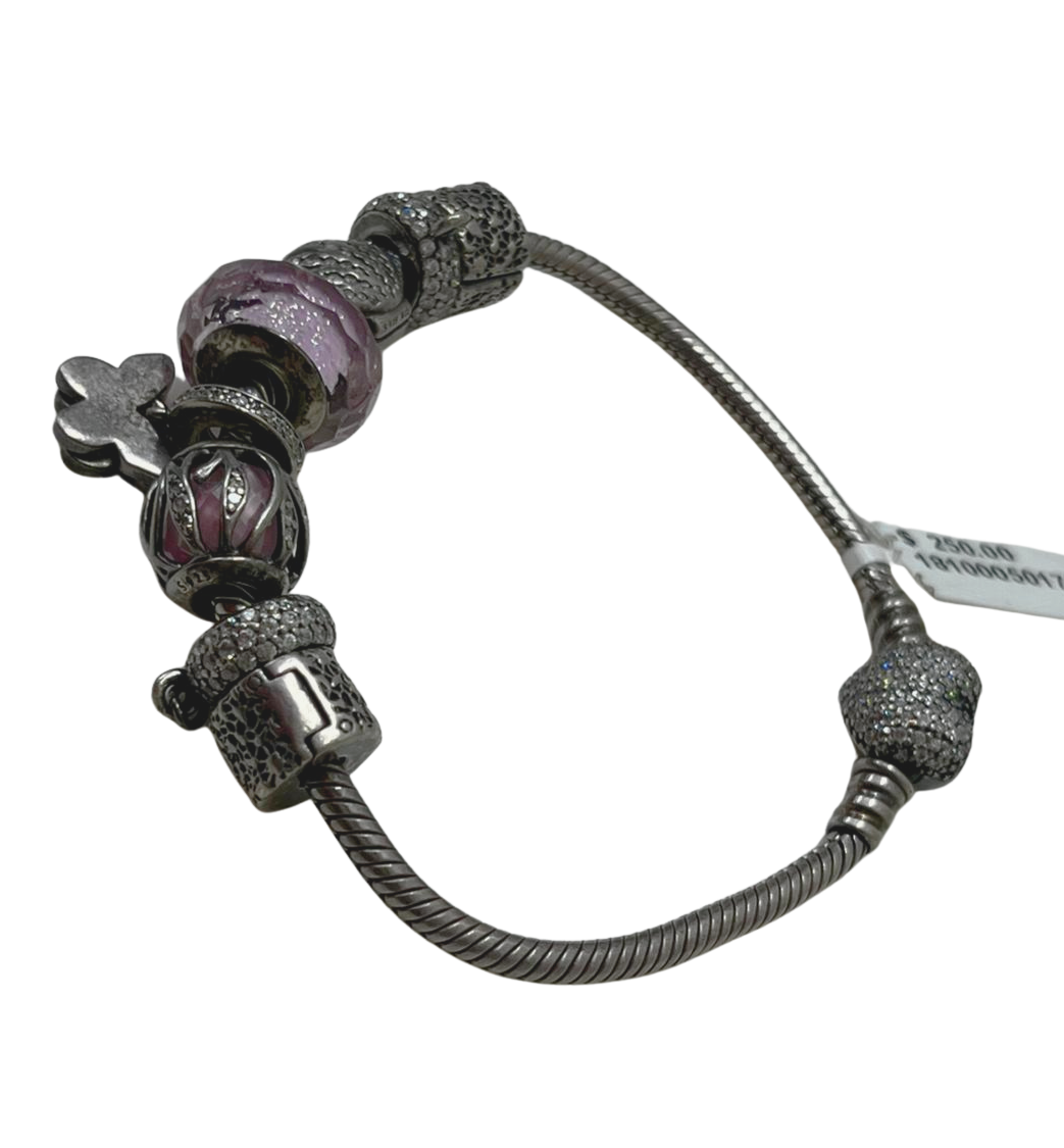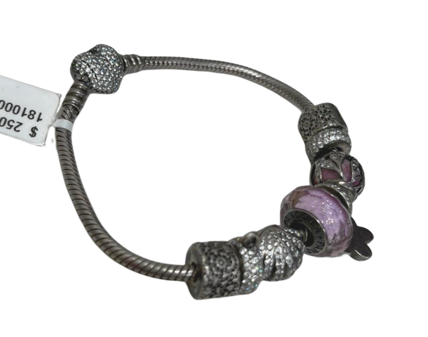 Pandora Heart And Snake Chain Bracelet With 8 Charms 36.5G Silver