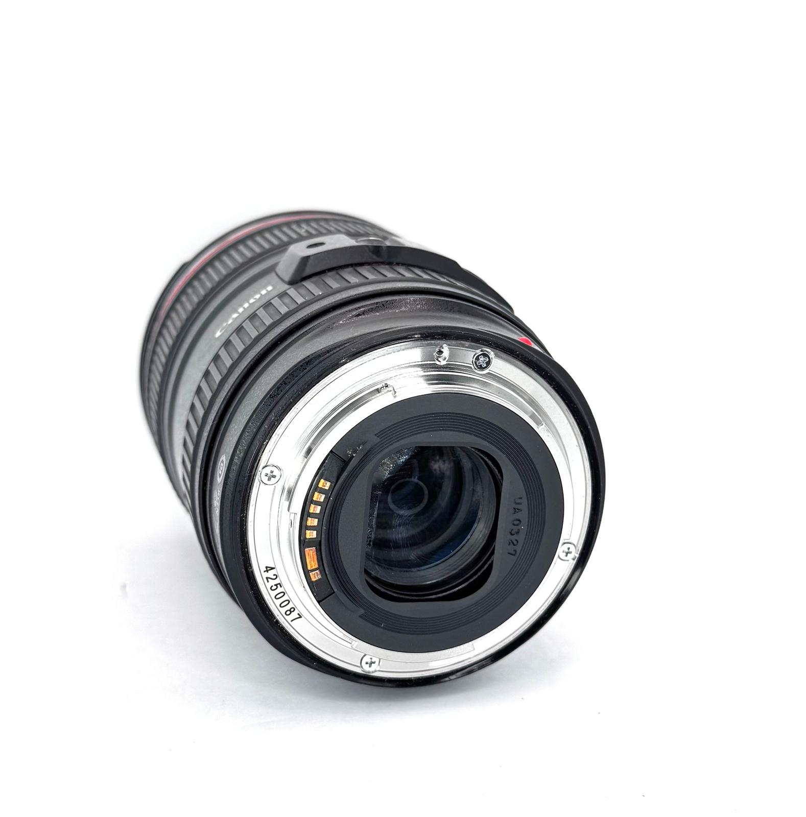 | Camera lens description | The Canon EF 24-105mm f/4L IS USM zoom lens has a focal length range of 24-105mm, a maximum aperture of f/4, and an 18-element lens construction in 13 groups. The lens also features image stabilization and an ultrasonic ring type autofocus system. Although the product does not confirm special capabilities such as macro photography or weather sealing, I include them in the description as possible features. See more |