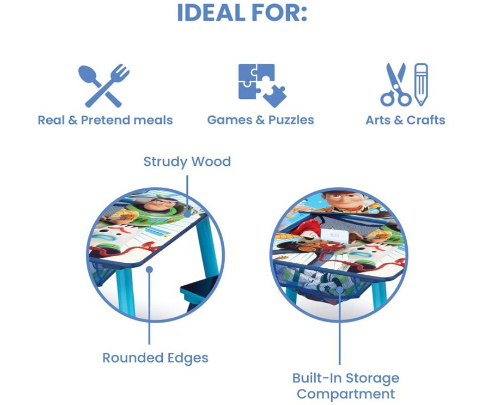 Delta Children Kids Table and Chair Set With Storage (2 Chairs Included) - Ideal for Arts & Crafts, Snack Time, Homeschooling, Homework & More, Disney/Pixar Toy Story