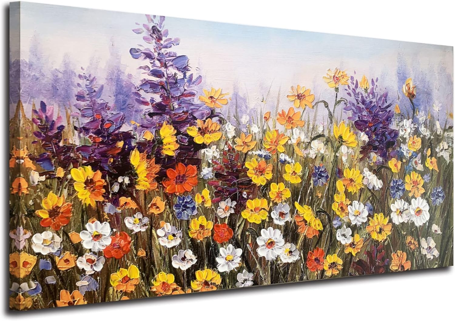 Ardemy Flowers Wall Art Canvas Daisy Colorful Bloosom Artwork Modern Landscape Painting 40inx20in