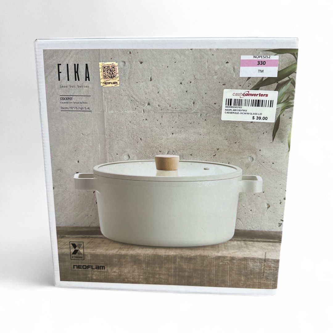 NEOFLAM Fika 26cm Casserole Non Stick Xtrema Ceramic Coating Silicone Rimmed Glass Lid
