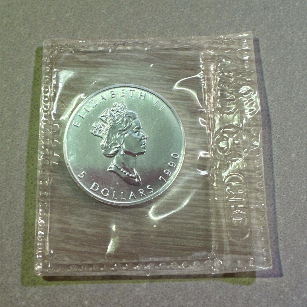 Silver Coin Queen Elizabeth/Maple Leaf 1990 $5 dollar