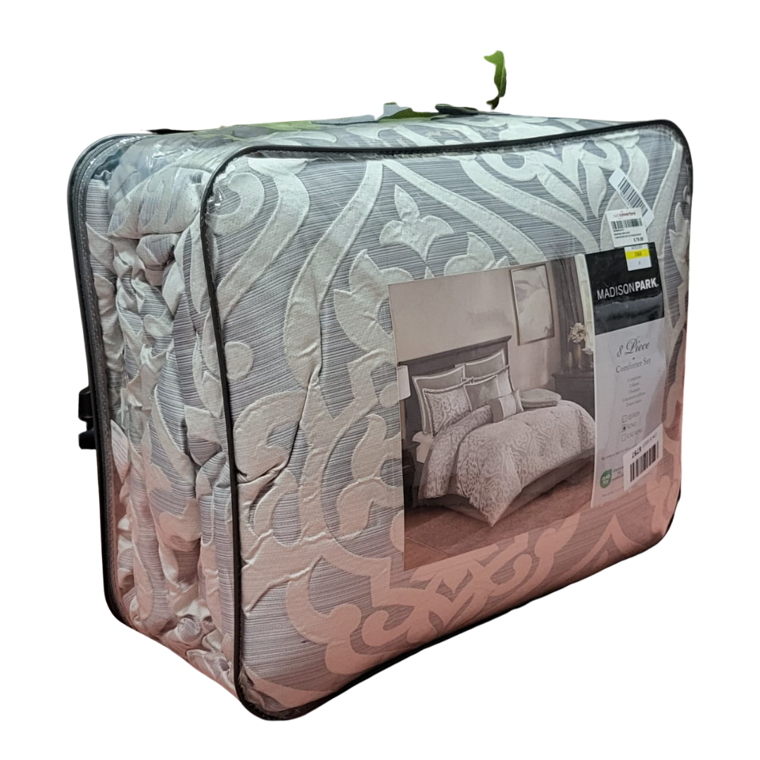 Madison Park Odette Cozy Comforter Set Jacquard Damask Medallion Design, King, Silver 8 Piece