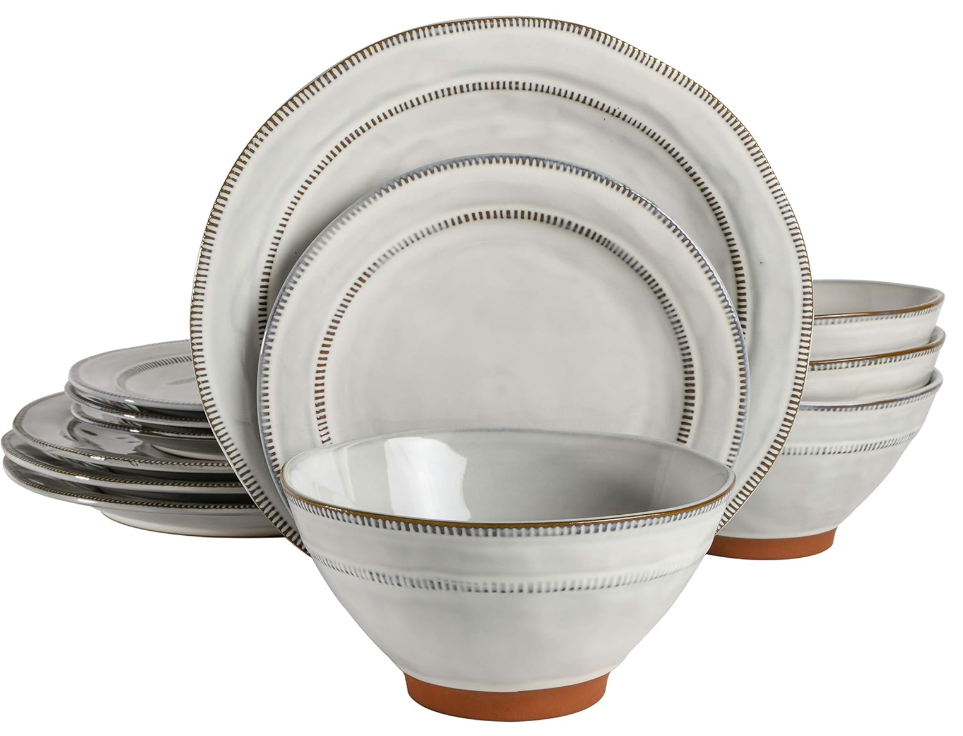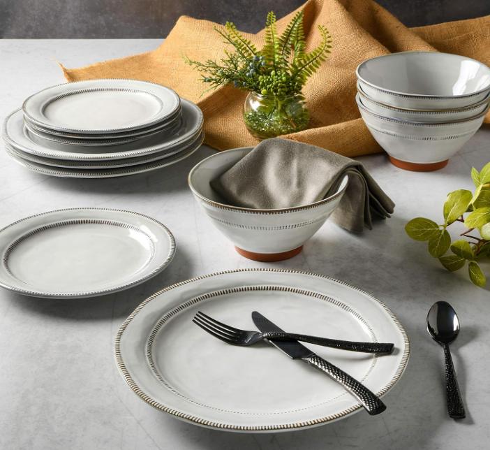 • BEAUTIFUL DESIGN: artisanal reactive glaze stoneware featuring a beautiful terracotta trim along the bottom of the dishes that adds a rustic feel to the set