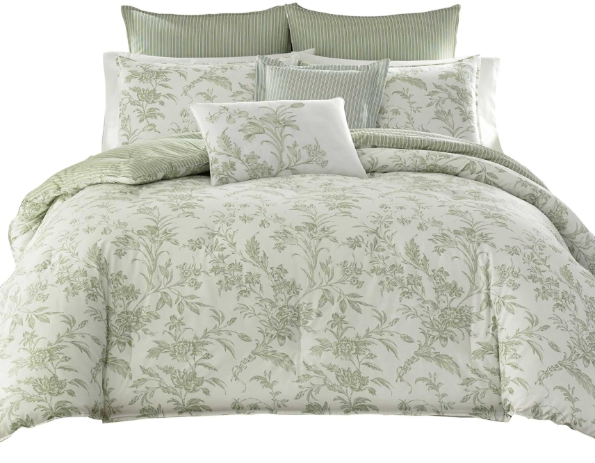 Laura Ashley Home - Twin Duvet Cover Set, Reversible Cotton Bedding with Matching Sham, Lightweight Home Decor for All Seasons (Natalie Sage, Twin)