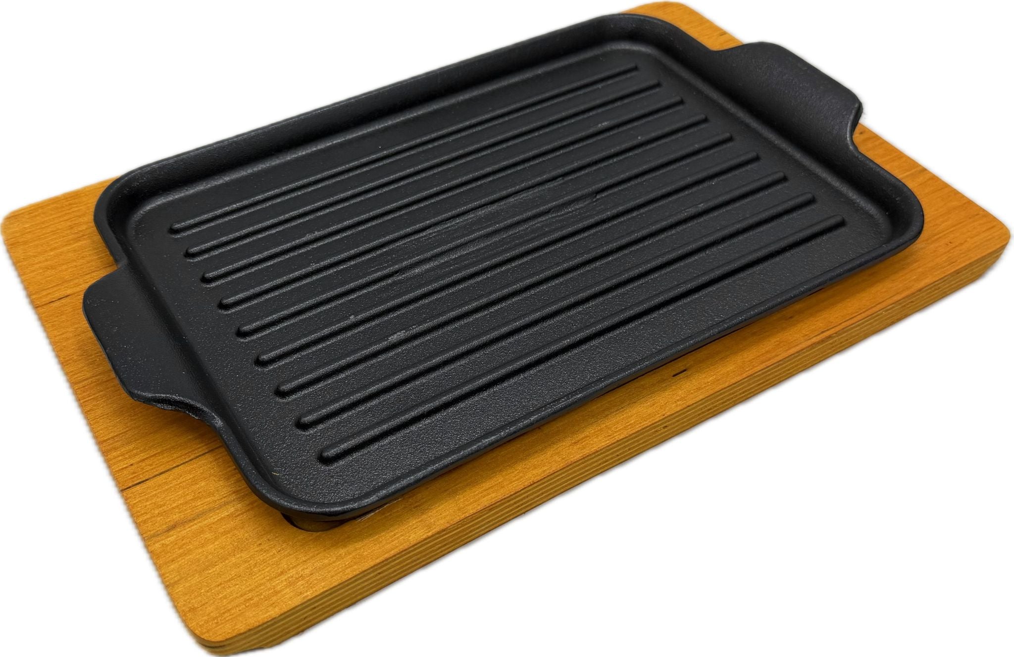 A heavy-duty 32cm rectangular cast iron grill tray designed for excellent heat retention and even cooking. Perfect for grilling meats, seafood, and vegetables, it delivers authentic grill marks and rich flavor whether used on a stovetop, oven, or barbecue.