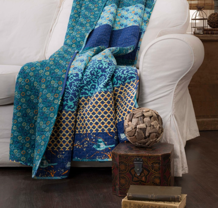 Lush Decor Royal Empire Reversible Cotton Throw Blanket, 50" W x 60" L, Peacock - Colorful Boho Patterns - Blue Throw - Fall Quilted Throw - Bohemian Striped Cotton Blanket For Bed, Couch, Or Chair