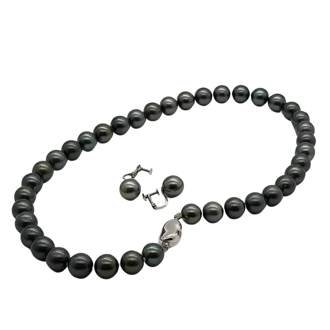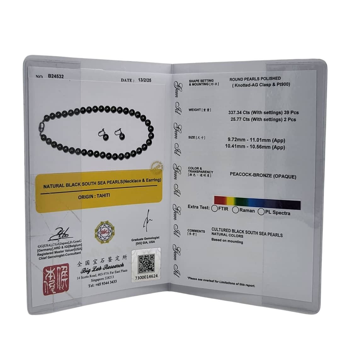 Natural Black South Sea Pearl Necklace & Earring Set (9.72 - 11.01mm)