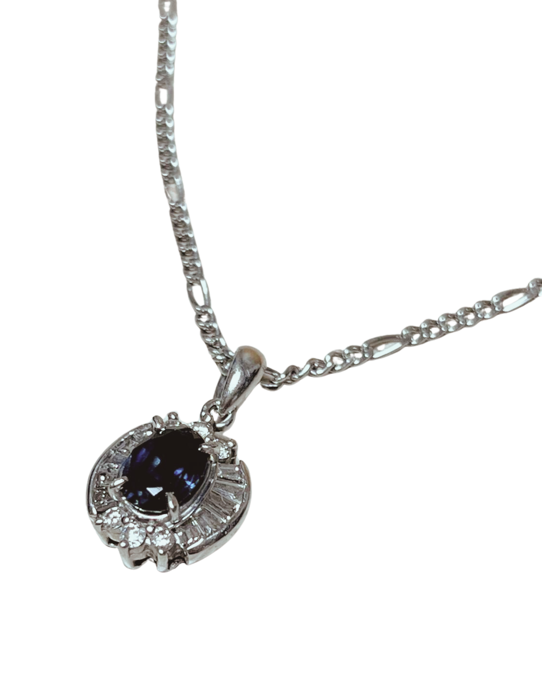 PT850 Necklace Blue Sapphire And Diamond Halo Pendant 7.8G