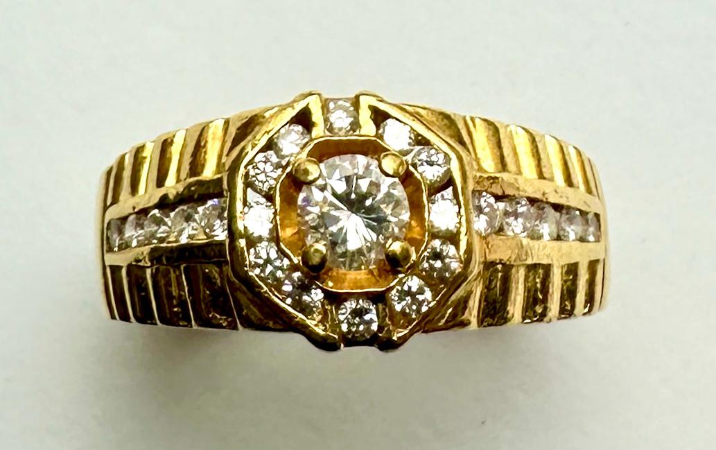 This distinguished 850 yellow gold men's ring showcases the timeless allure of precious metalwork combined with the brilliance of diamond craftsmanship. The rich warmth of yellow gold provides a luxurious foundation that complements diverse skin tones while demonstrating enduring value. The diamond setting captures and reflects light with exceptional sparkle, serving as a focal point that elevates the piece beyond ordinary jewelry. The 850 gold composition ensures durability and purity, making this ring suitable for daily wear while maintaining its lustrous finish. The refined proportions and balanced design reflect expert craftsmanship and attention to detail. Whether marking a significant milestone or serving as a statement of personal style, this ring embodies sophistication and permanence. This pre-owned luxury piece from Cash Converters offers authentic precious metal quality and gemstone brilliance at exceptional value. A meaningful investment that transcends trends and celebrates enduring elegance.