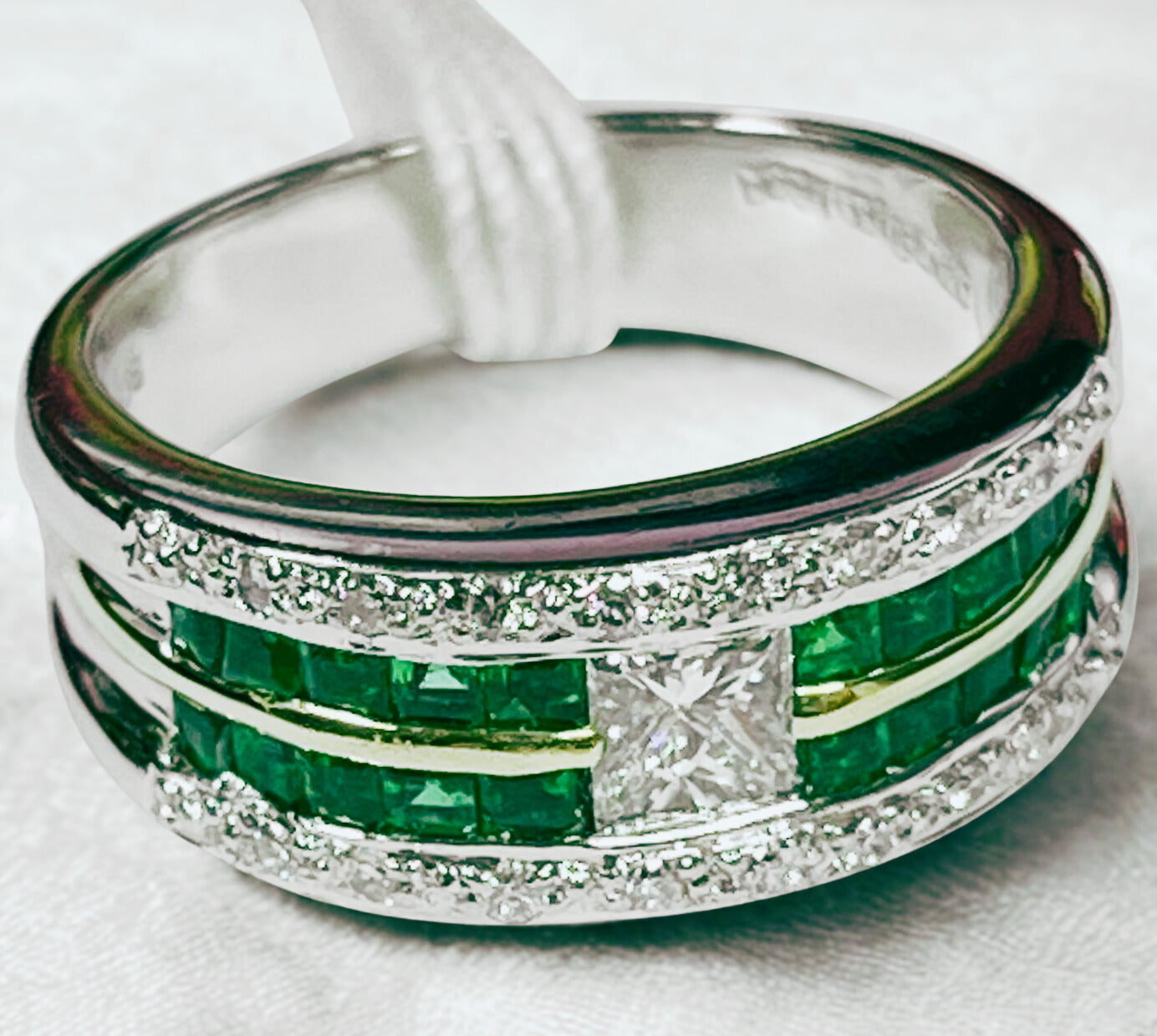 18K PT900 9.9G Diamond And Emerald Ring