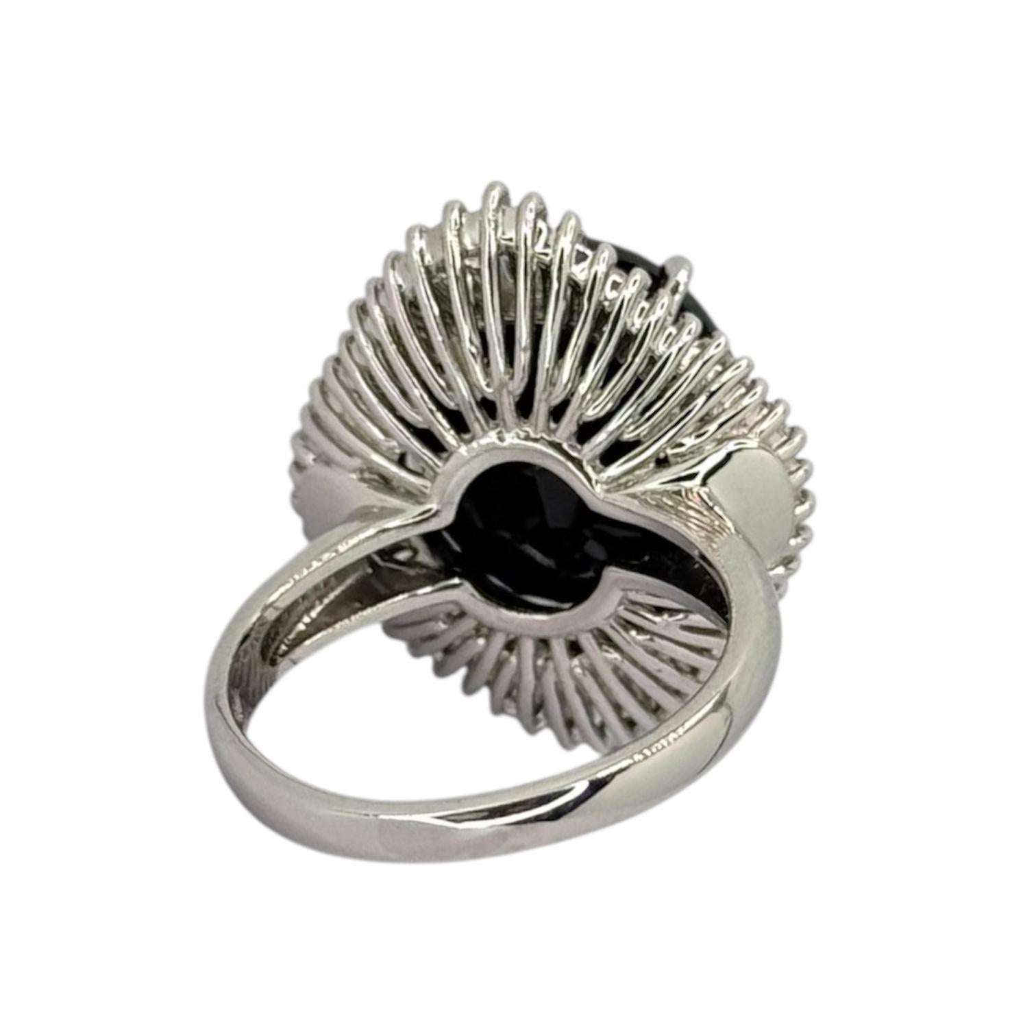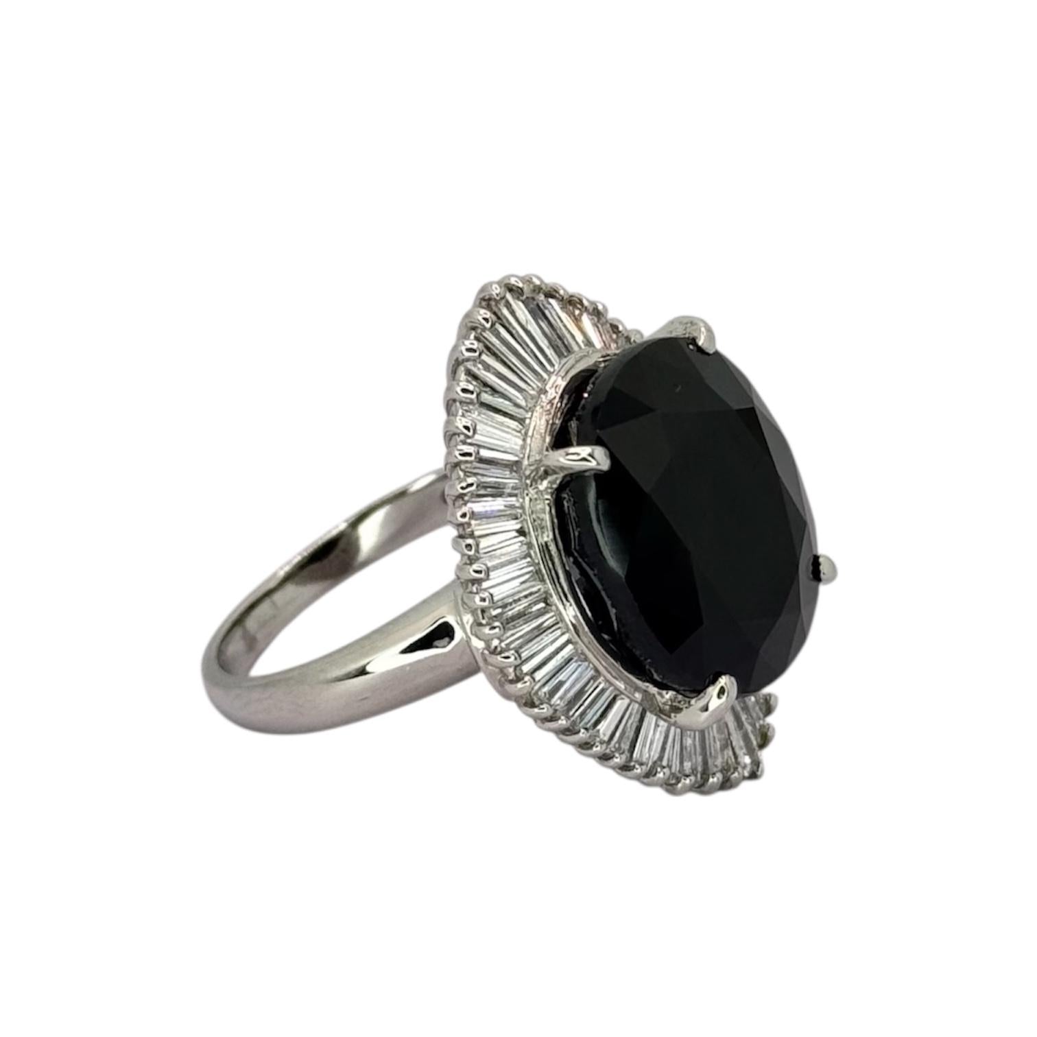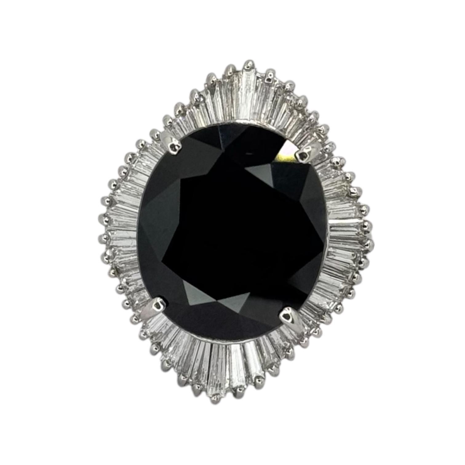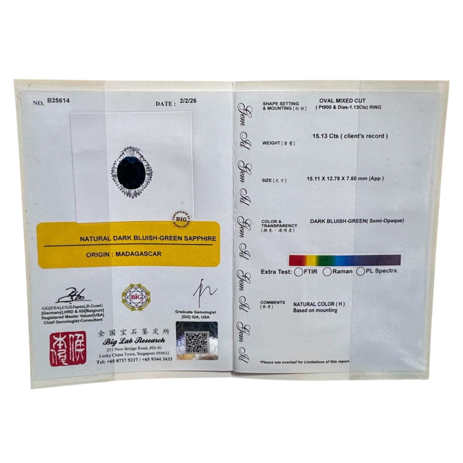 PT900 Dark Bluish-Green Sapphire=15.13cts, Diamond=1.13cts Lady Ring w/Cert