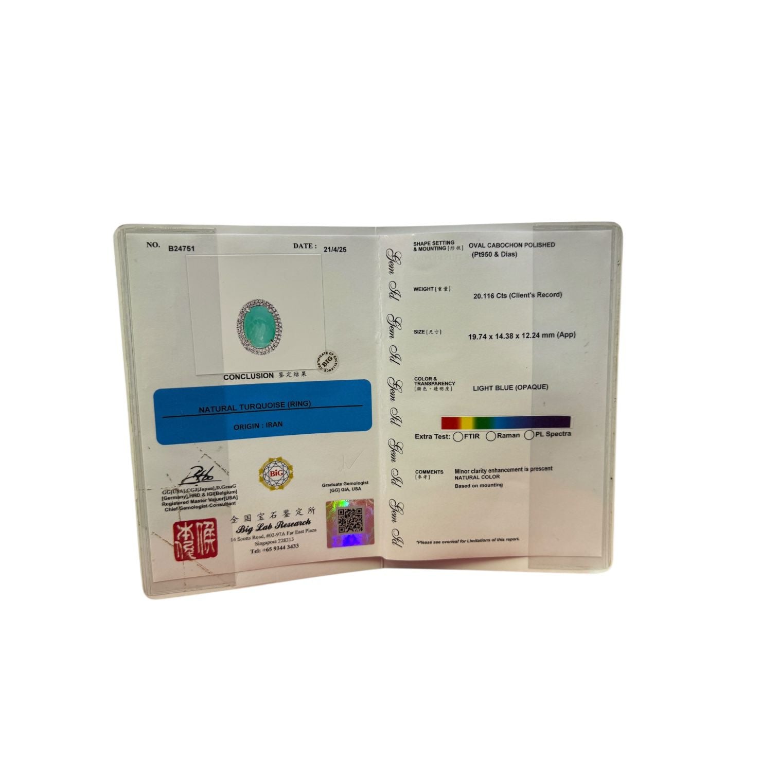 RING-PT950/TURQUOISE1=20.116/D1.23/11.57G/12/CERT TURQUOISE RING