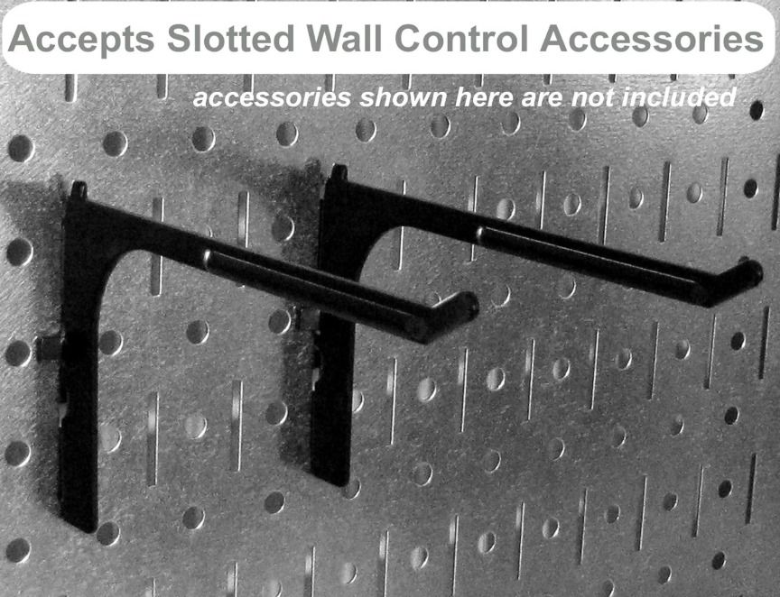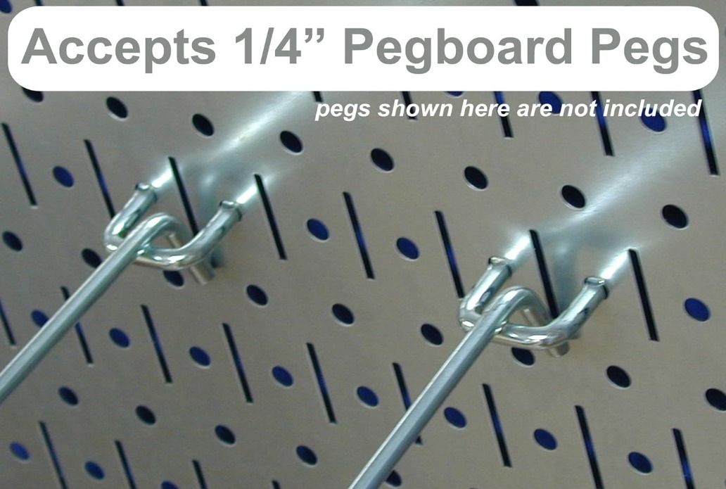 - The Metal Pegboard panels accept slotted, stable, and more secure hooks, brackets, and shelves as well as common traditional 1/4" Pegboard Pegs making this system one of the most versatile wall storage systems available today