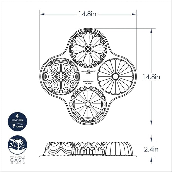Nordic Ware 91377 Bundt Quartet Pan, quotL x 12.38"W x 2.47&Quoth, Gold