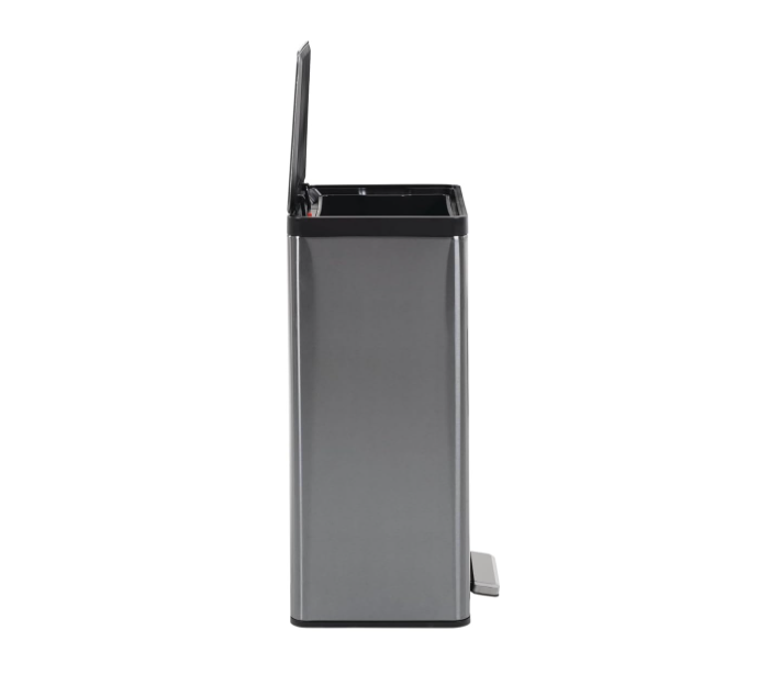 - HANDS FREE USE: The charcoal stainless steel foot pedal stands up to daily use and removes the need to touch the lid during waste disposal to keep hands clean.
