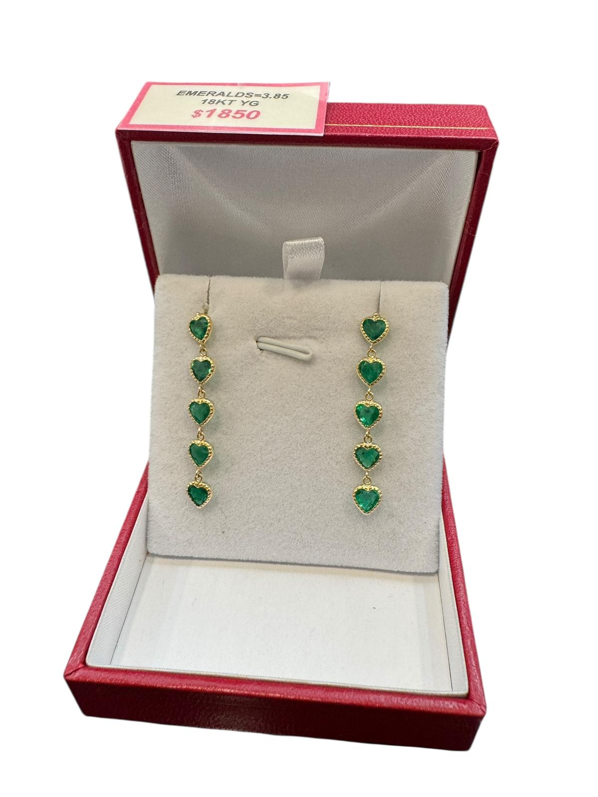 Emerald 18K Yellow Gold Heart Shapes Earring