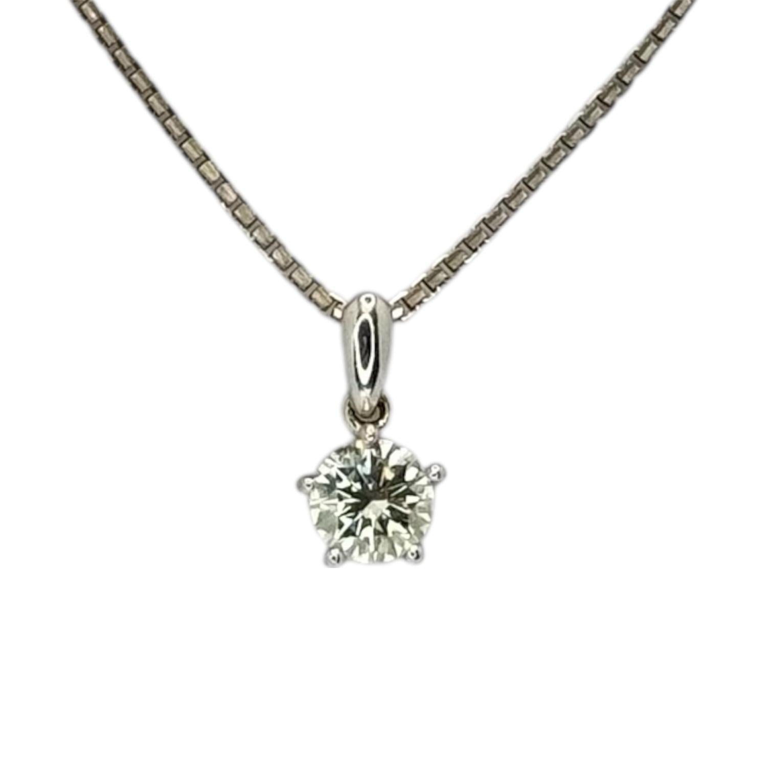 750WG Solitaire Natural Diamond=0.52cts w/Chain and Cert