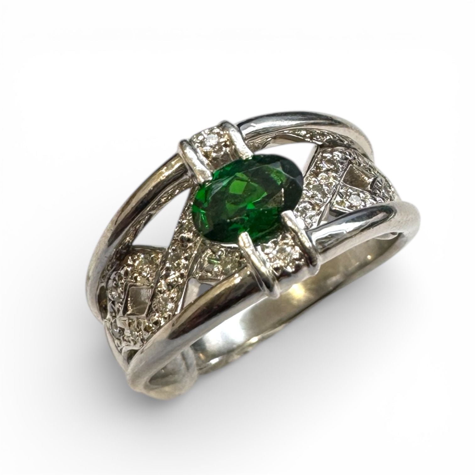 RING-PT900/Tsavorite1=0.51/MD=0.12/9.3G/CERT GREEN GARNET RING