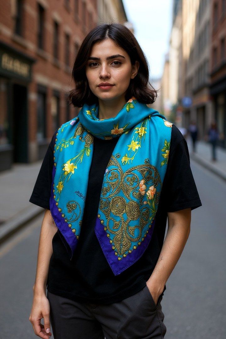 Elevate your accessory collection with this authentic Hermès Carré 90 silk scarf, a timeless investment piece. Crafted from luxurious silk in a generous 88x88cm format, this scarf showcases an exquisite arabesque pattern rendered in sophisticated teal and gold tones, accented by a striking purple border. The refined design reflects Hermès' legendary craftsmanship and attention to detail, making it versatile for styling around the neck, as a headscarf, or as a distinctive accessory. Perfect for discerning collectors and those who appreciate fine French luxury goods.