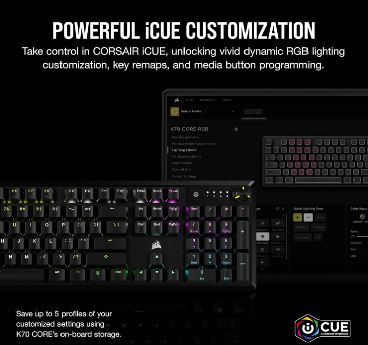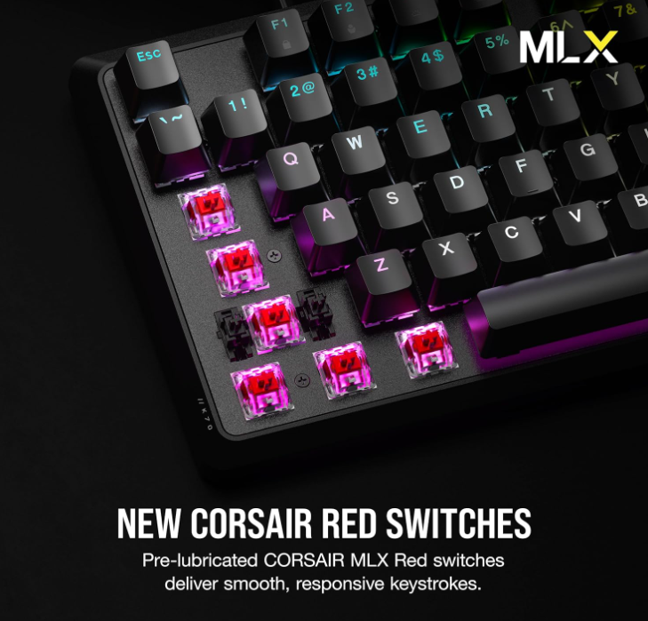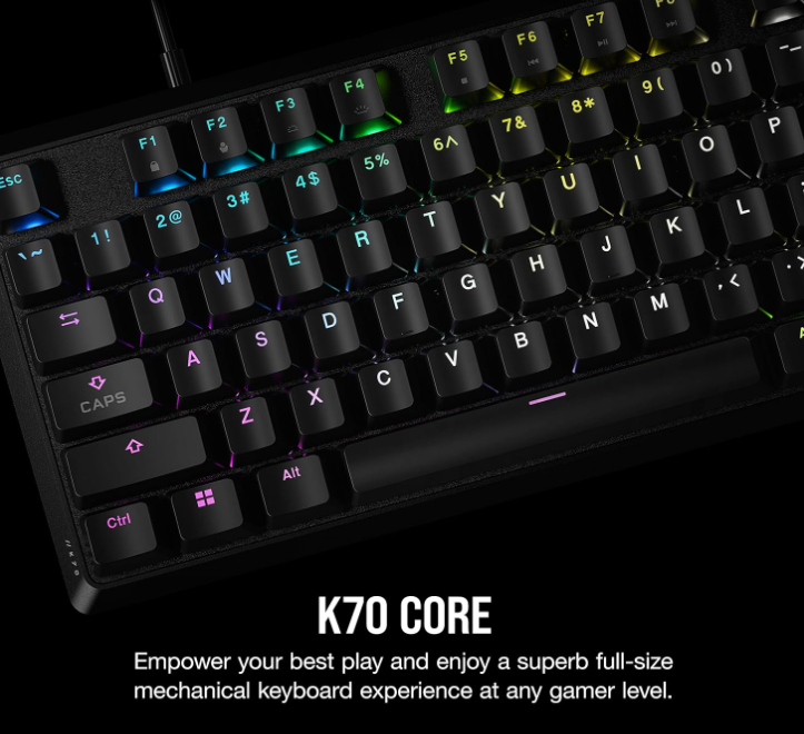 CORSAIR K70 CORE RGB Mechanical Gaming Keyboard - Pre-lubricated Corsair MLX Red Linear Keyswitches - Sound Dampening - Media Control Dial - iCUE Compatible - QWERTY NA Layout - Black