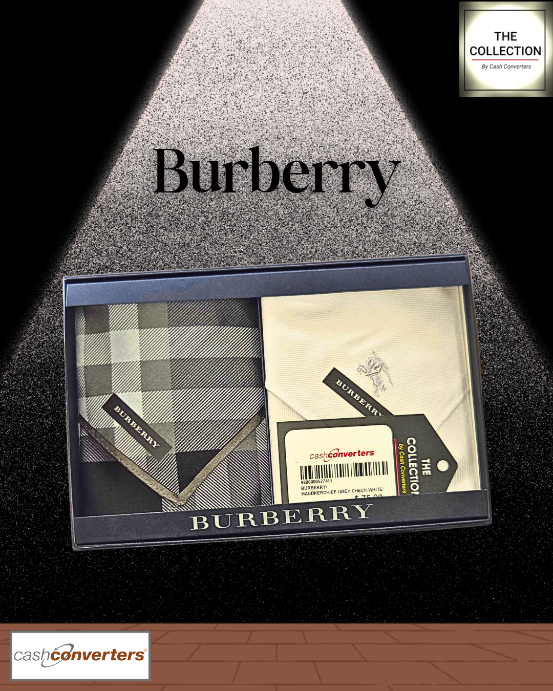 Burberry Handkerchief Set of 2 Grey and White