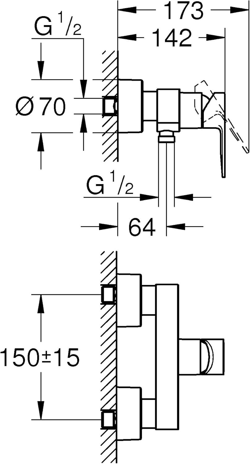 SHOWER MIXER-SINGLE LEER/SILVER GROHE 874/