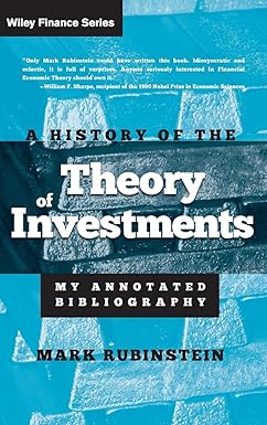 A History of the Theory of InvestmentsĀ is about ideas -- where they come from, how they evolve, and why they are instrumental in preparing the future for new ideas. Author Mark Rubinstein writes history by rewriting history. In unearthing long-forgotten books and journals, he corrects past oversights to assign credit where credit is due and assembles a remarkable history that is unquestionable in its accuracy and unprecedented in its power.