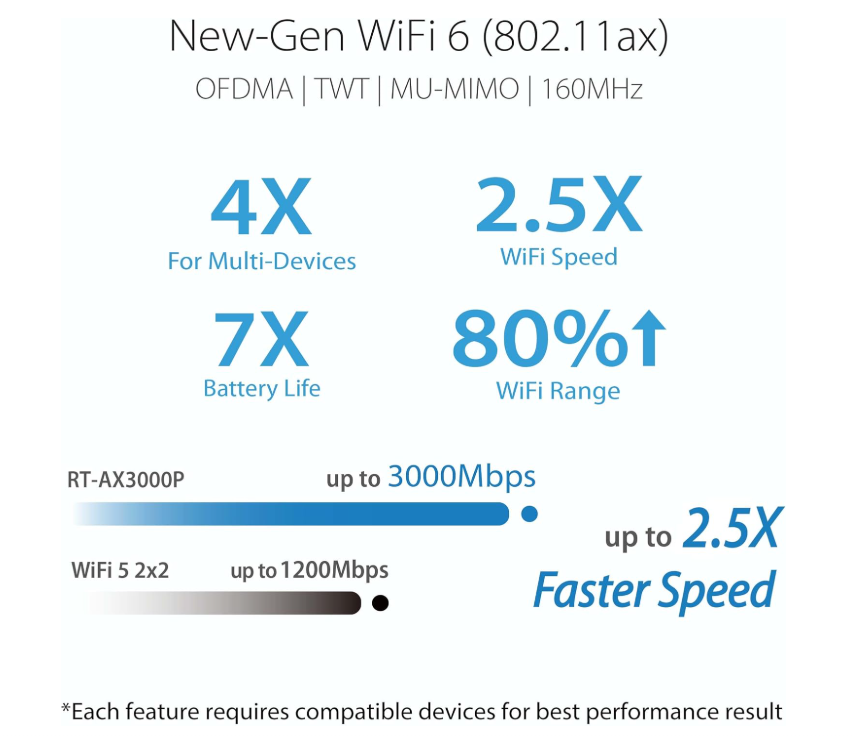 ASUS RT-AX3000P Dual Band WiFi 6 (802.11ax) Router