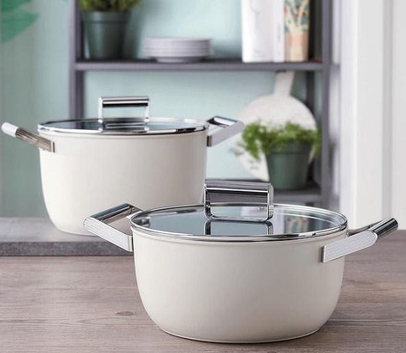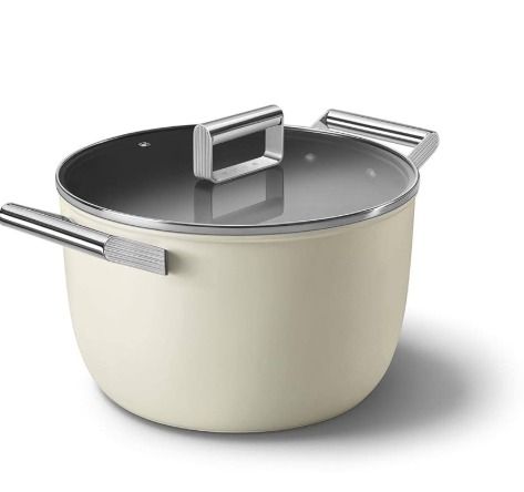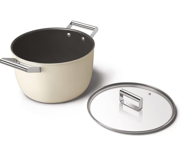 Smeg CKFC2611CRM Non-Stick Casserole with Lid, 26cm, Cream