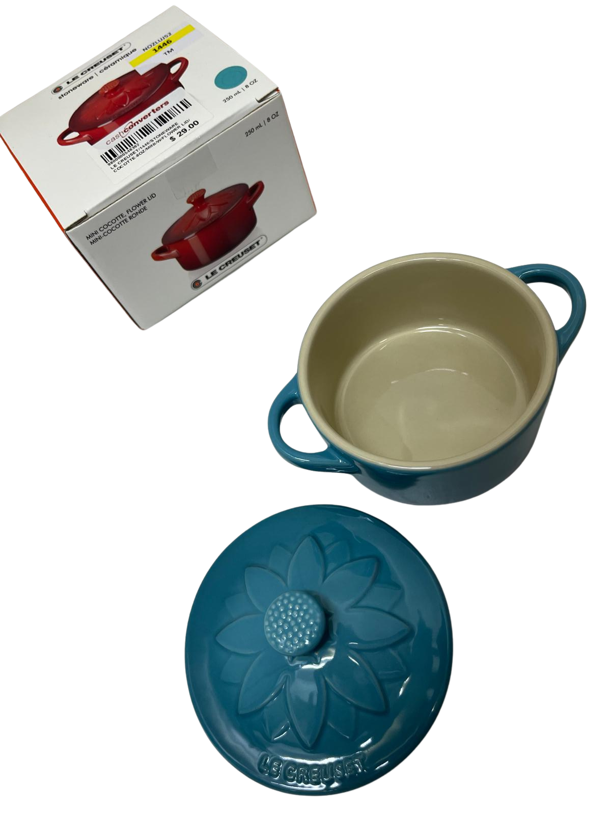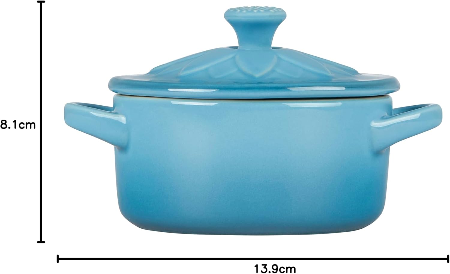 Le Creuset Stoneware Mini Round Cocotte With Flower Lid, 8oz, Caribbean