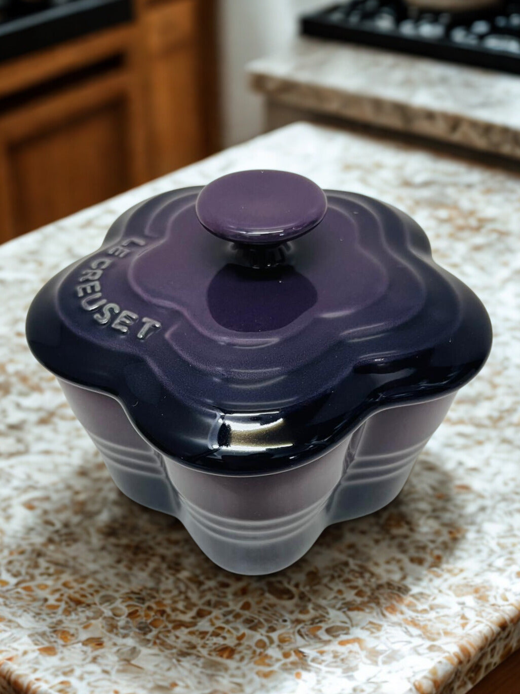 Le Creuset Small Flower Ramekin With Lid 7oz Cassis