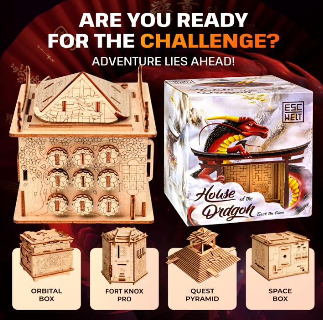ESC WELT House of Dragon Puzzle Box - Escape Room in a Box - Brain Teaser Games for Adults - 3d Board Games with Hidden Compartment - Gift Box - Cash Puzzles Money Box - Wooden Board Game for Adults