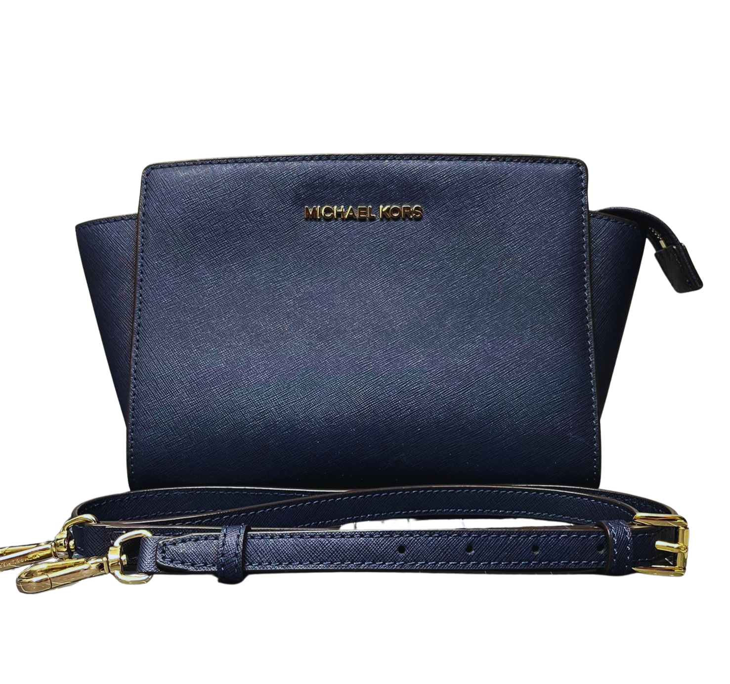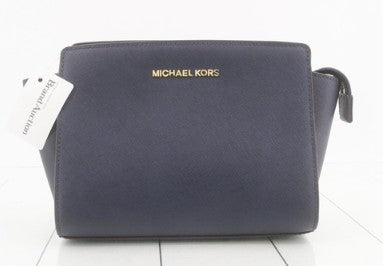 Michael Kors Selma Saffiano Leather Medium Messenger Bag Navy