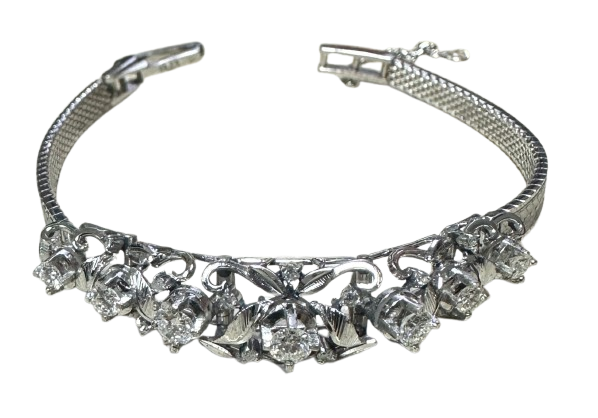The 375 White Gold Diamond Bracelet exemplifies understated luxury through its harmonious blend of precious metal and brilliant gemstones. Crafted in 375 white gold—a time-honored alloy prized for its neutral elegance and durability—this bracelet provides a sophisticated canvas for diamond brilliance. The diamonds are meticulously selected and set to maximize light refraction, creating a captivating sparkle that catches the eye without overwhelming the senses. White gold's cool tone complements diamond's inherent colorlessness, resulting in a cohesive aesthetic that transcends seasonal trends. The bracelet construction ensures secure wearability for both formal occasions and refined everyday elegance. This piece represents a judicious investment in fine jewelry, combining the enduring appeal of diamonds with white gold's versatility and longevity. Whether worn as a standalone statement or layered with complementary pieces, this bracelet serves as a testament to refined taste and appreciation for timeless craftsmanship that withstands the passage of time.