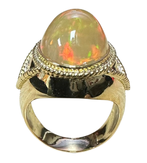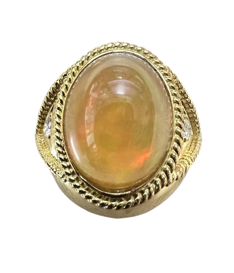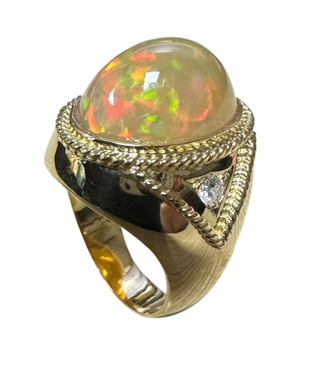750 Yellow Gold Opal Diamond Men Ring