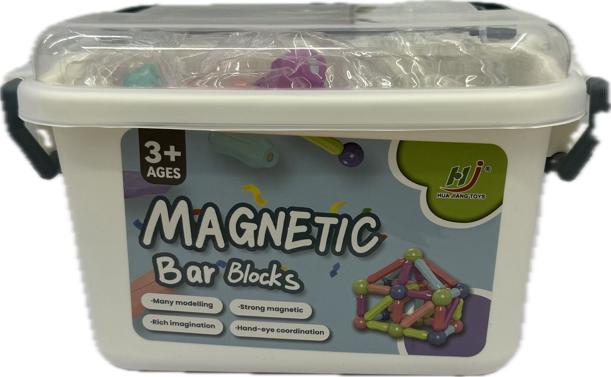 • 42-piece set of magnetic rods and bars for creative building and construction