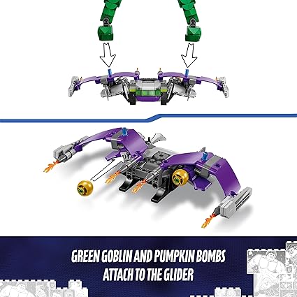 LEGO Marvel Green Goblin Construction Figure, Posable Super Villain Building Toy