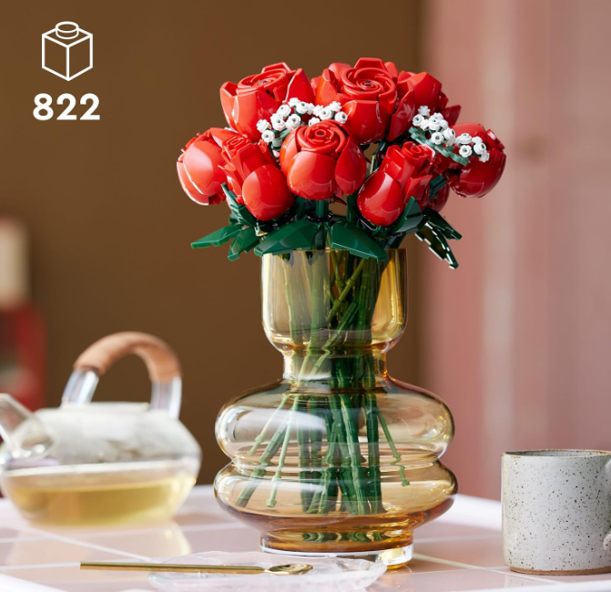 - Buildable home decor bouquet – Indulge yourself or join friends and family for a mindful project with the LEGO Icons Bouquet of Roses building set for adults