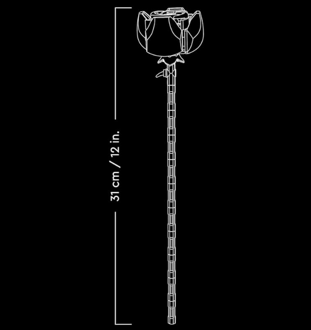 - What’s in the box – This creative building set includes everything you need to craft a dozen red roses with long green stems, plus 4 sprigs of baby’s breath with small white flowers