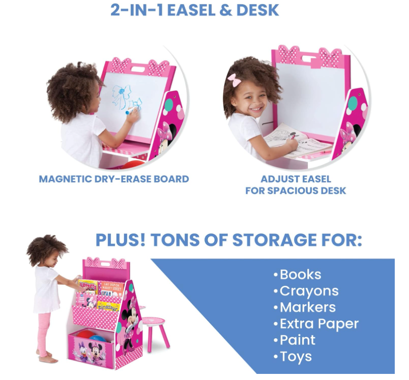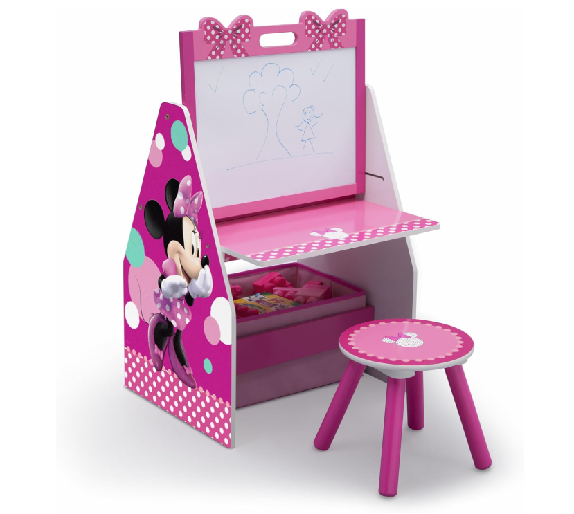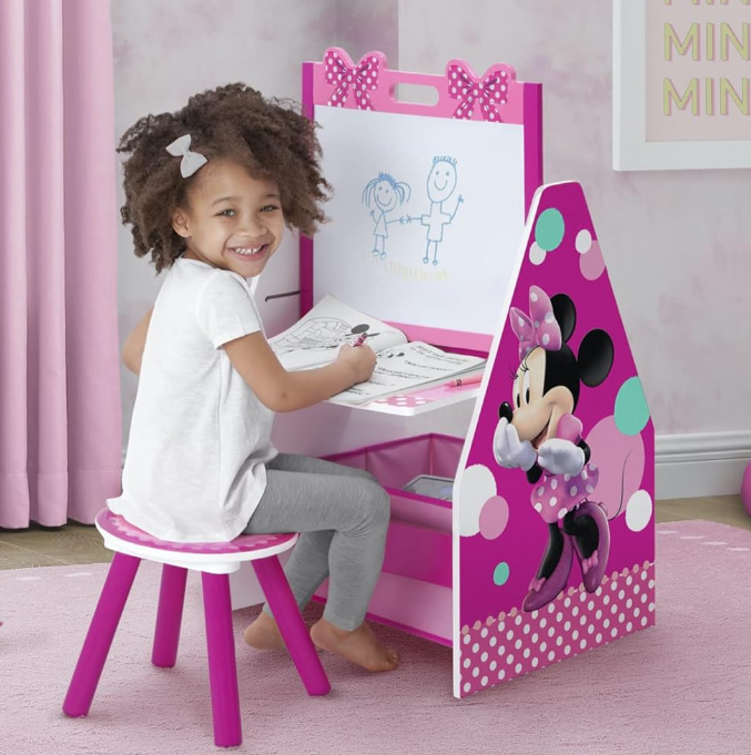 Delta Children Kids Easel and Play Station – Ideal for Arts & Crafts, Drawing, Homeschooling and More - Greenguard Gold Certified, Disney Minnie Mouse