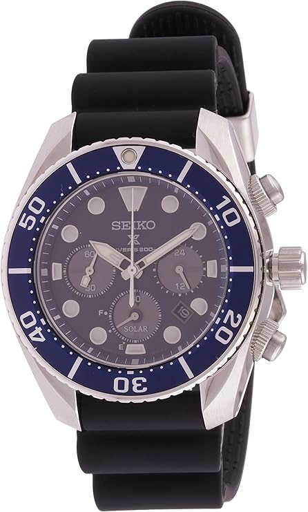 SEIKO Prospex Chronograph Quartz Blue Dial Black Silicone Men's Watch SSC759J1, Black
