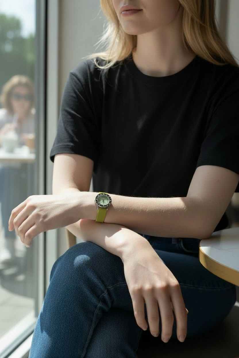 WATCH-LADIES/B.ZERO1/QZ/GREEN MOP DIAL/GRN LTHR BVLGARI BZ22S B.ZERO1