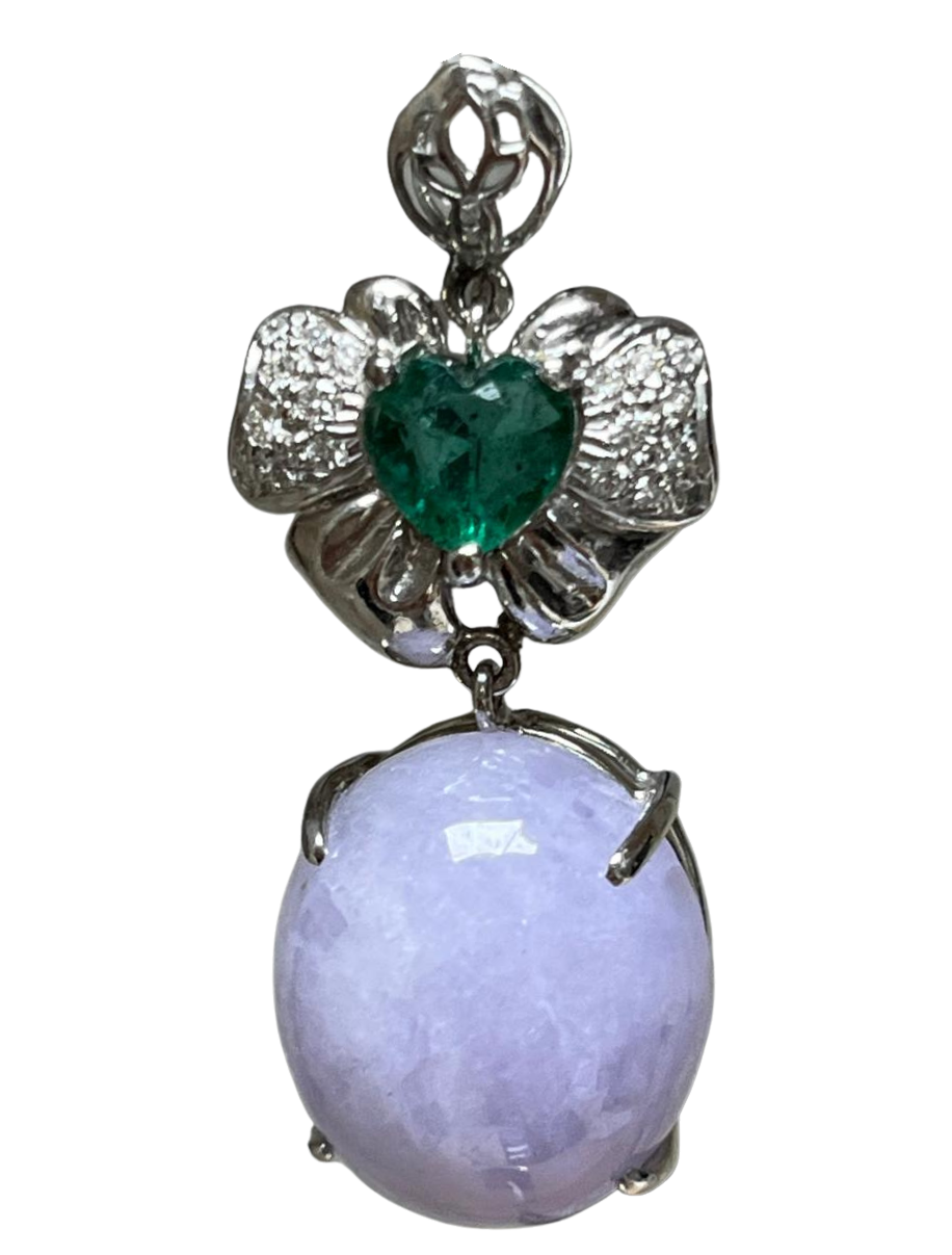 18K WG Lavender JadeA Emerald Diamond Pendant 7.6GM