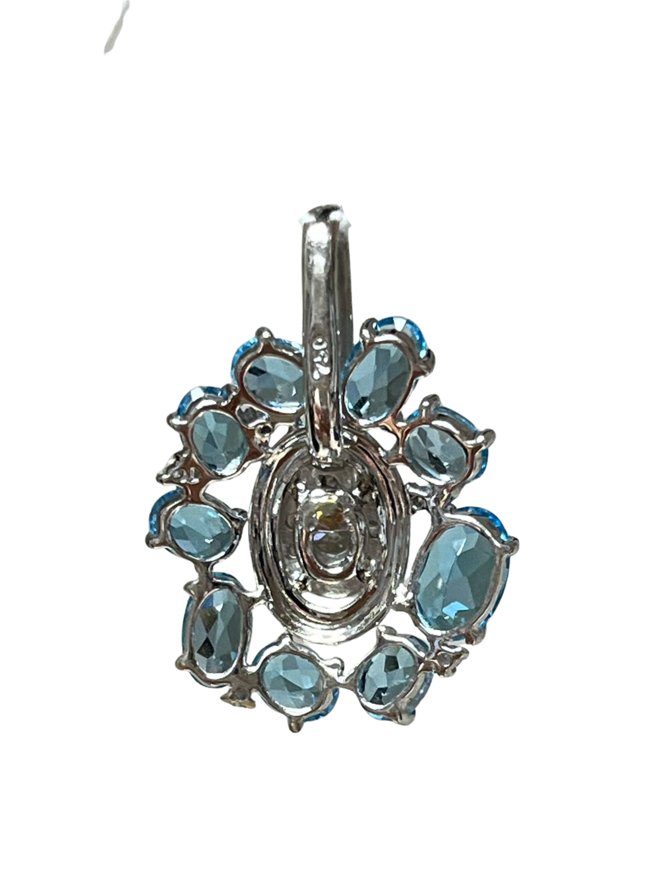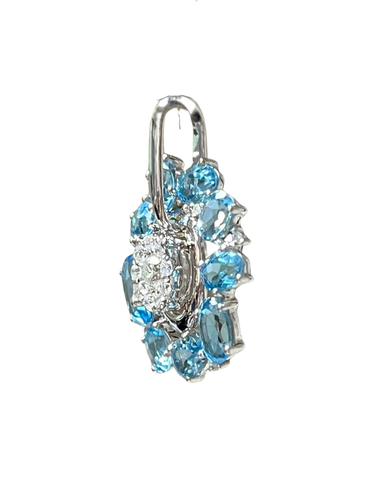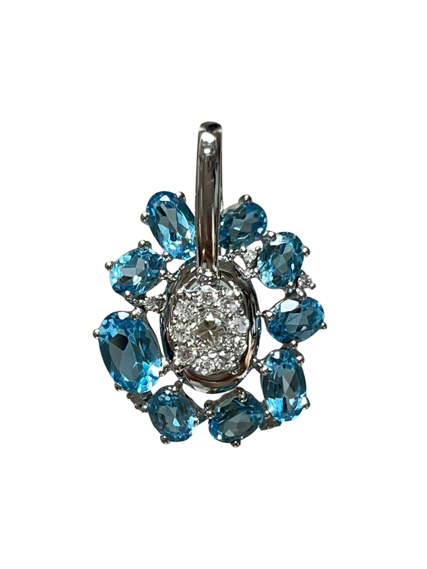 750WG Flower Shaped Blue Topaz And Diamond Pendant 2.3GM