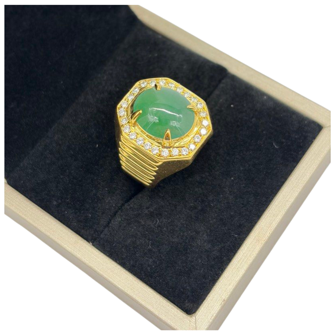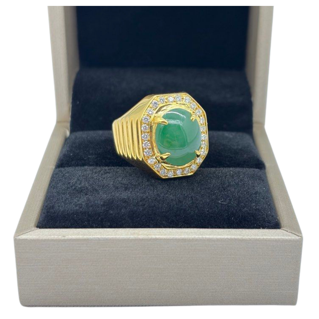 916 Yellow Gold Natural Jadeite (Type-A) & Diamond Men’s Ring